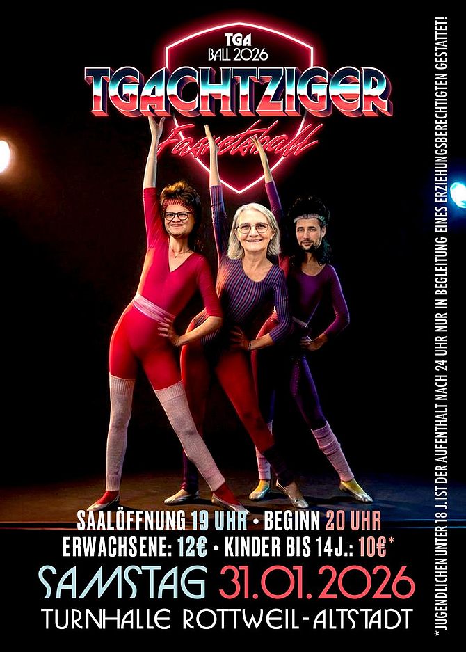 Am Samstag, den 31.1.2026 findet der diesjährige TGA-Ball unter dem Motto TGAchtziger statt.